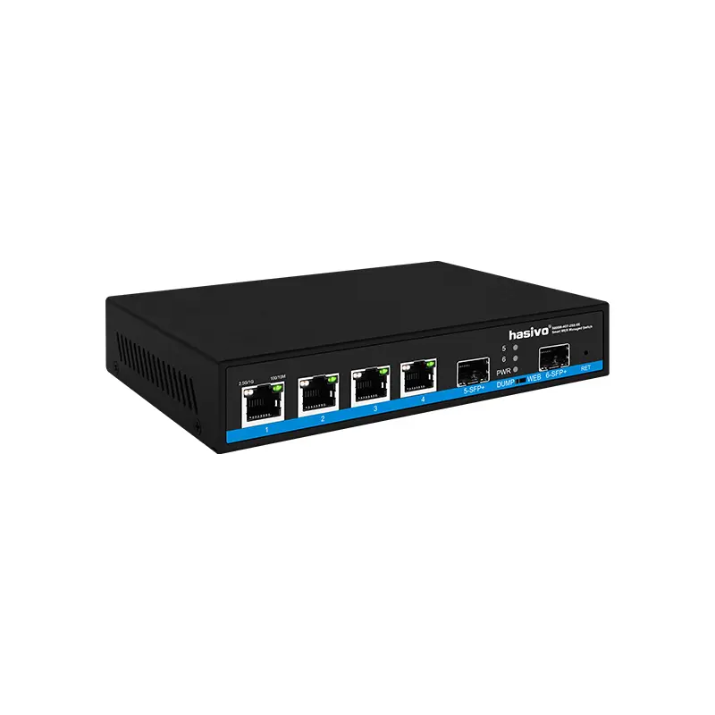 S600W-4GT-2SX-SE is a newly launched 2.5G 10G uplink Smart WEB managed switch by Hasivo. It adopts a new generation of high-performance hardware and software platforms, providing flexible and cost-effective full 2.5G access and uplink ports, supporting complete security protection mechanisms. It is independently developed and designed for the construction of high-performance gigabit networks, providing a comprehensive security protection system, perfect QoS policies, and rich VLAN functions. It is easy to manage and maintain, meeting users' networking needs for easy management, high security, and low cost of network equipment. It can be applied to the core layer of small and medium-sized enterprises, residential areas, and schools.